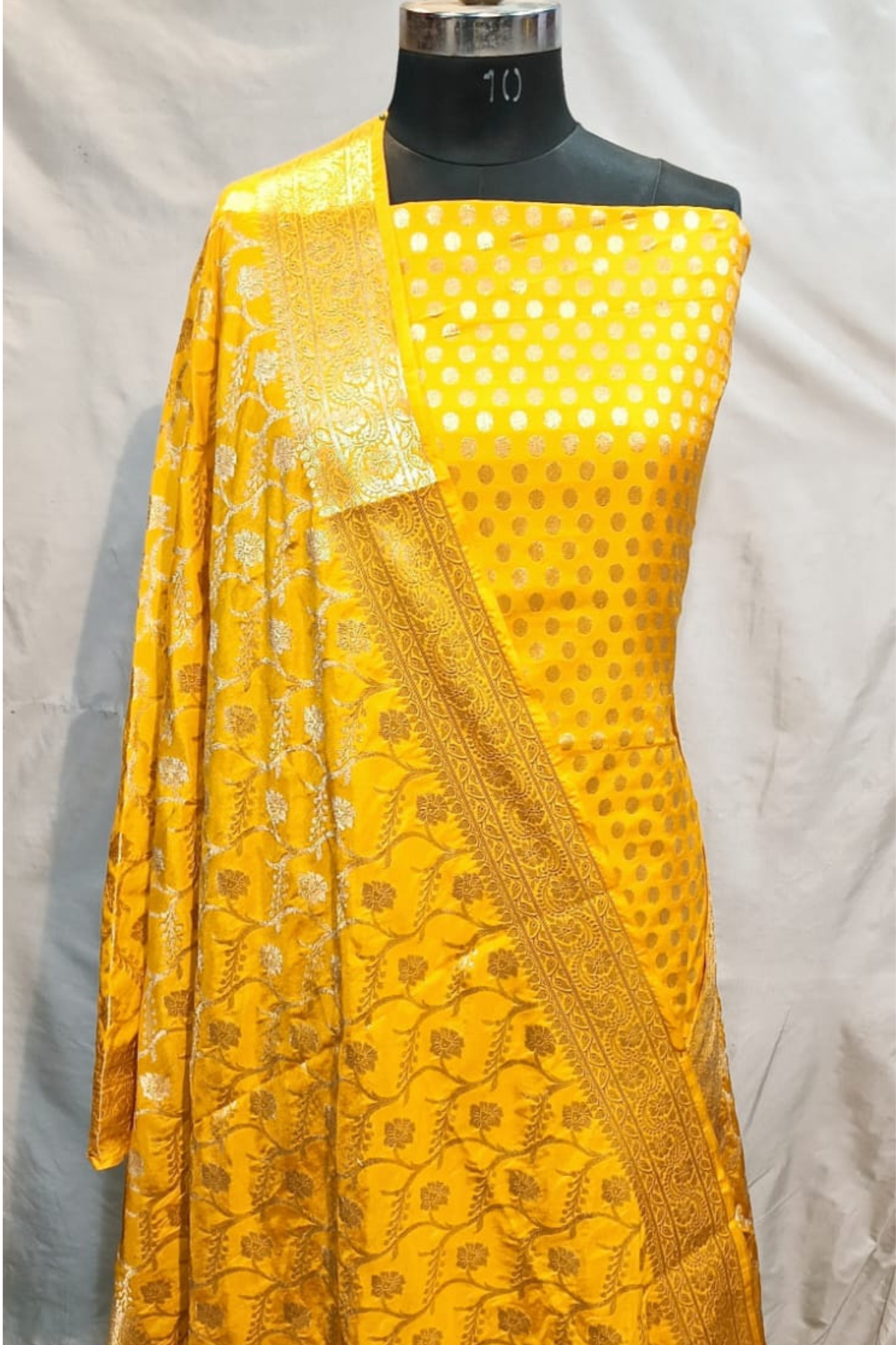 ● Wedding and festive dress Canary Yellow Banarasi Katan salwar suit, which is becoming popular in the canary yellow colour.