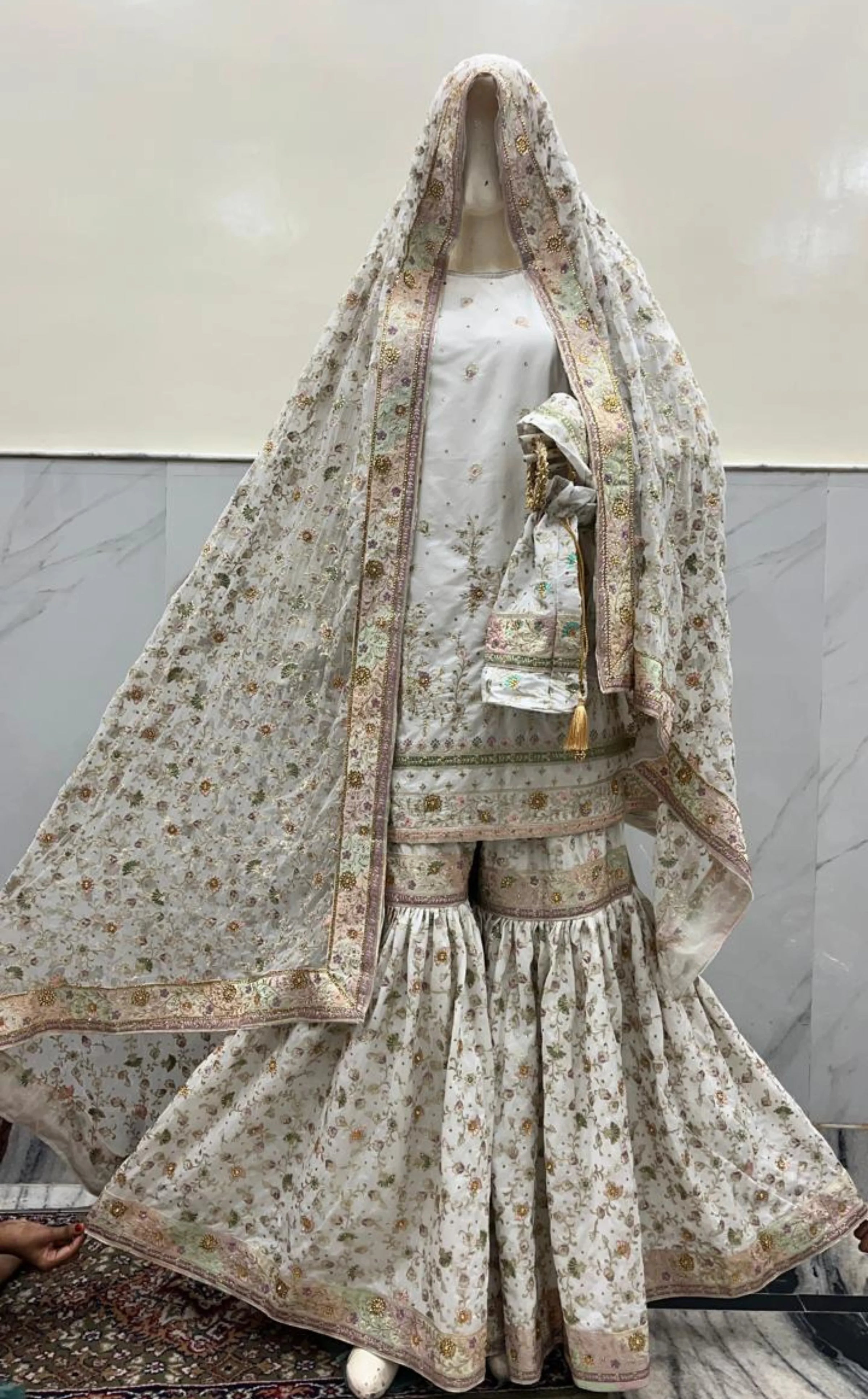 Color: Pure White (Top, Gharara Pant & Dupatta)