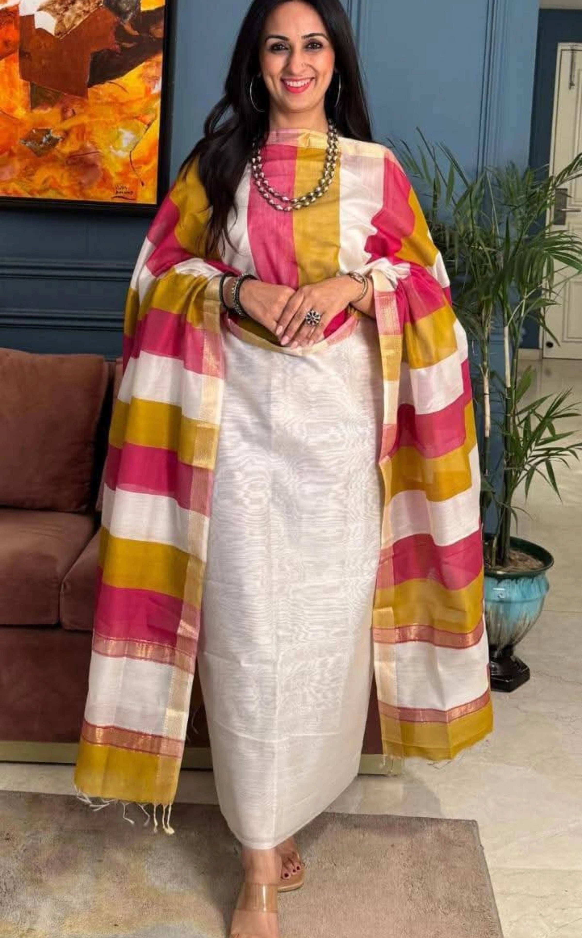 Banarasi Salwar Kameez in Traditional White with Dupatta Signature Elegance