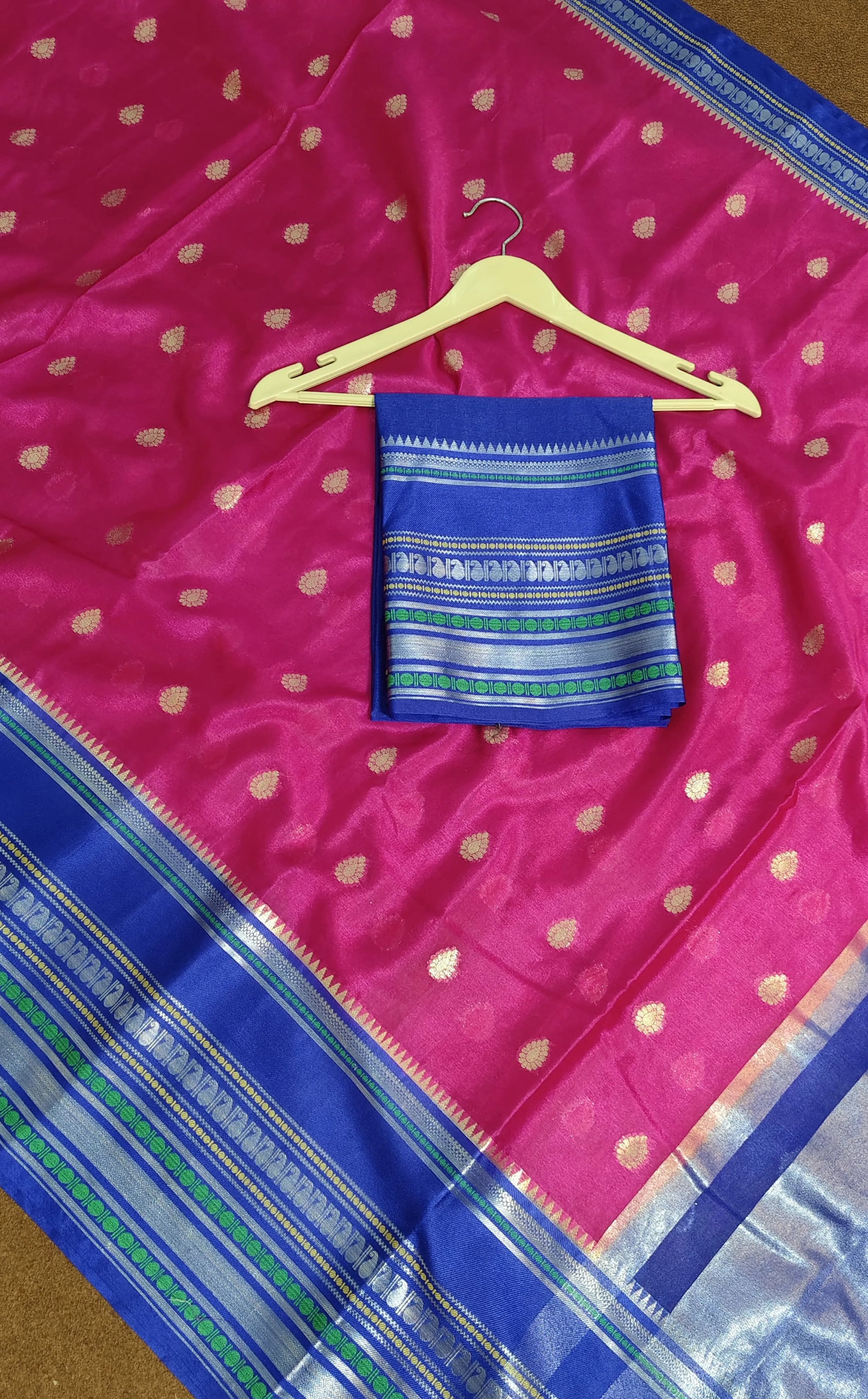 Deep Pink and Blue Banarasi Semi Katan Soft Silk Saree