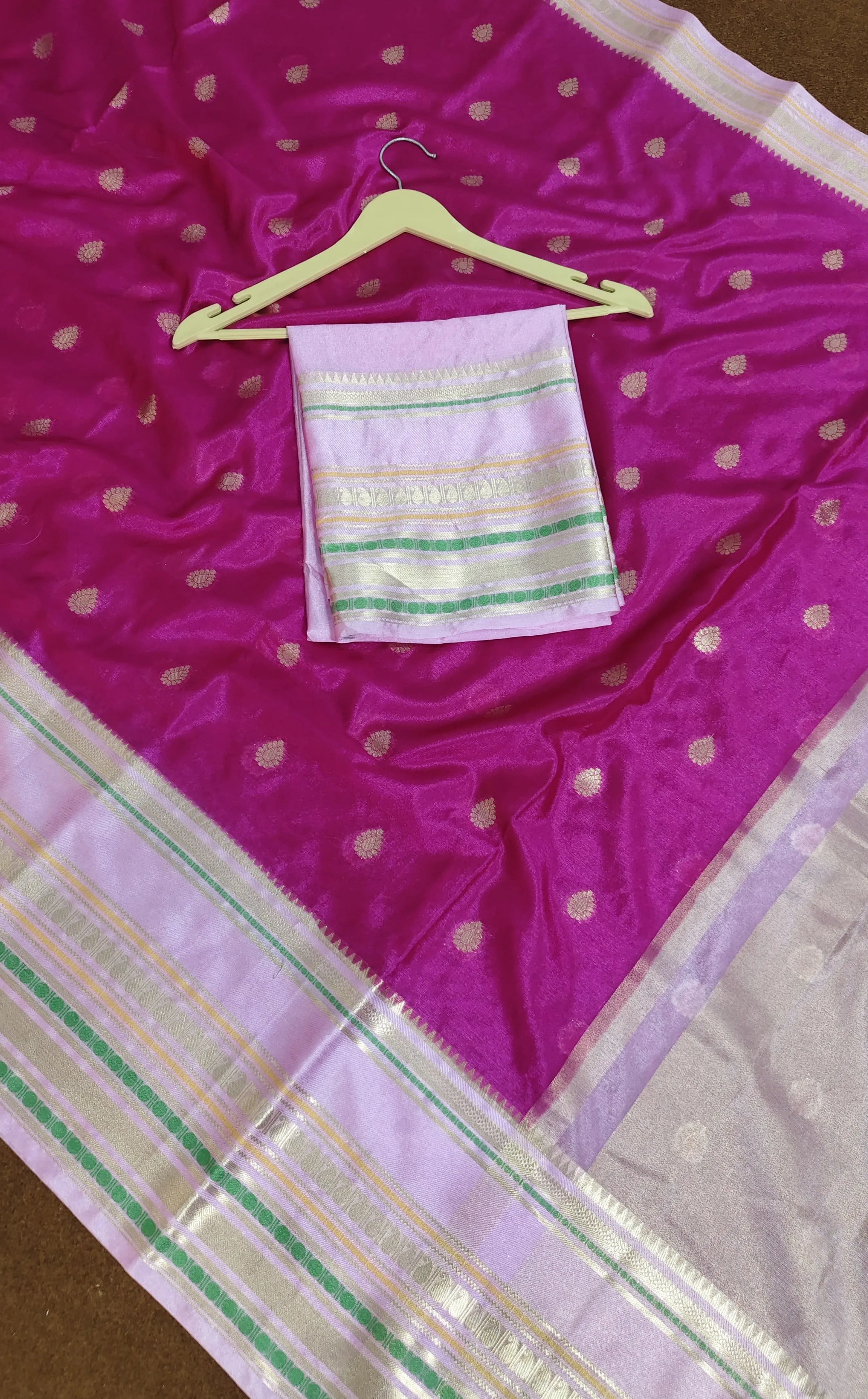 Deep Purple and Light Purple Banarasi Semi Katan Soft Silk Saree