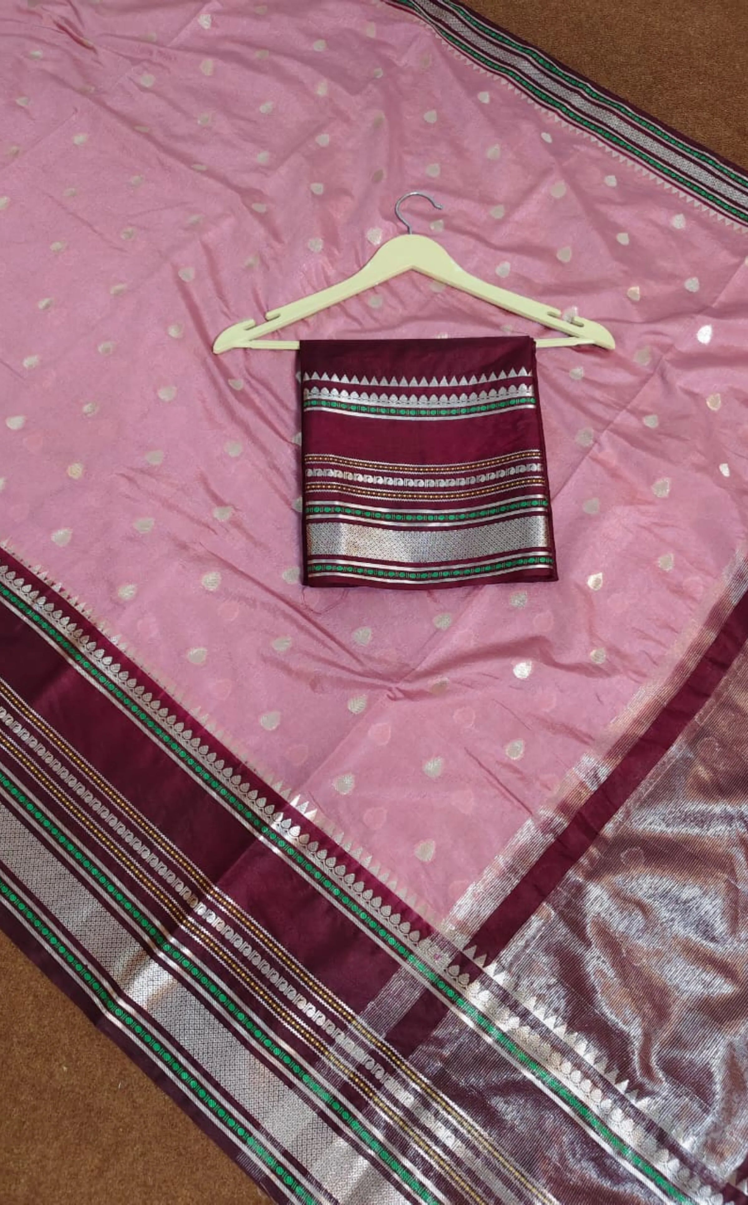 Maroon and Pink Banarasi Semi Katan Soft Silk Saree