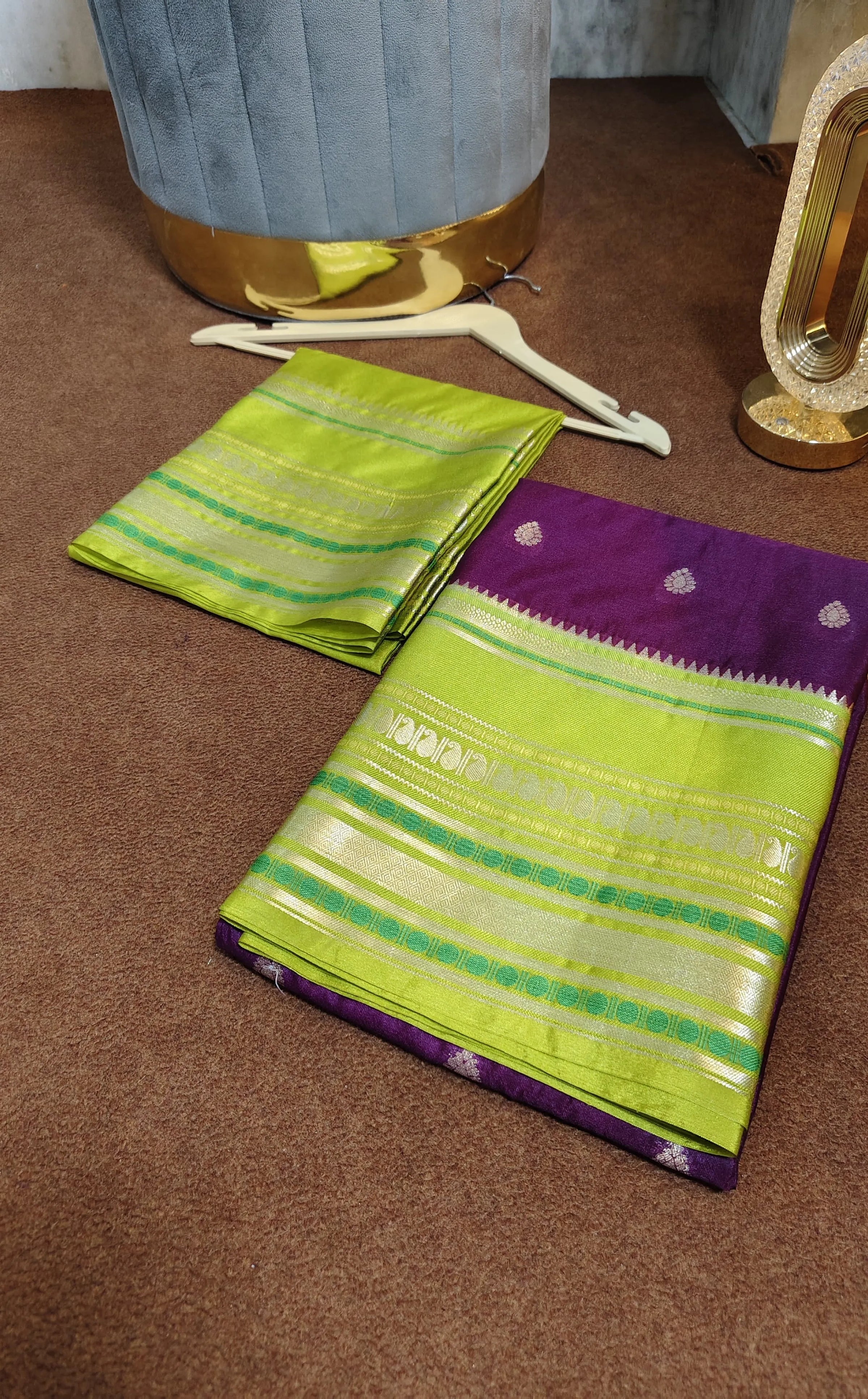 Purple and Green Banarasi Semi Katan Soft Silk Saree