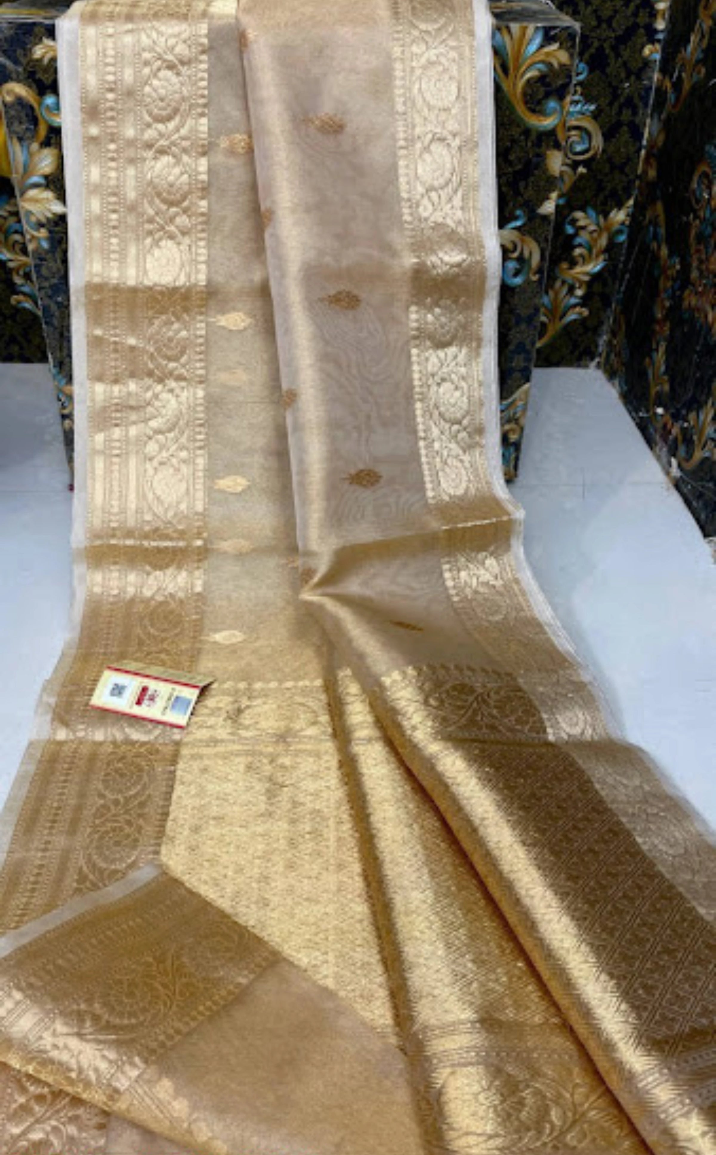 Premium White Banarasi Copper Tissue Silk Saree