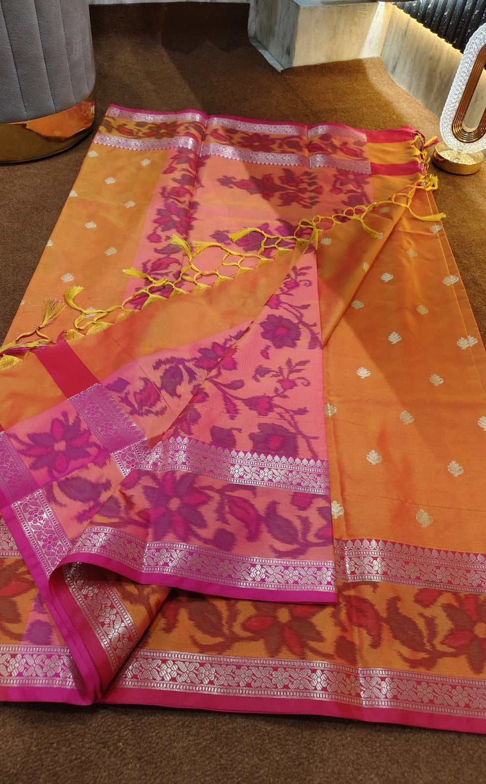 Orange and Pink Pochampally Silk Soft Fabric Saree