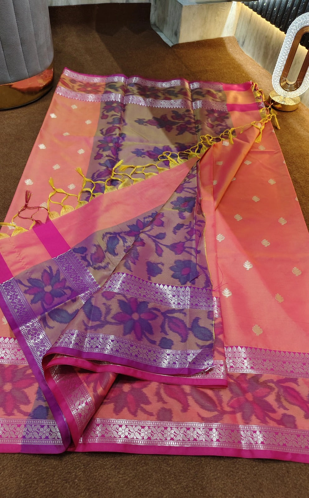 Pink and Purple Pochampally Silk Soft Fabric Saree