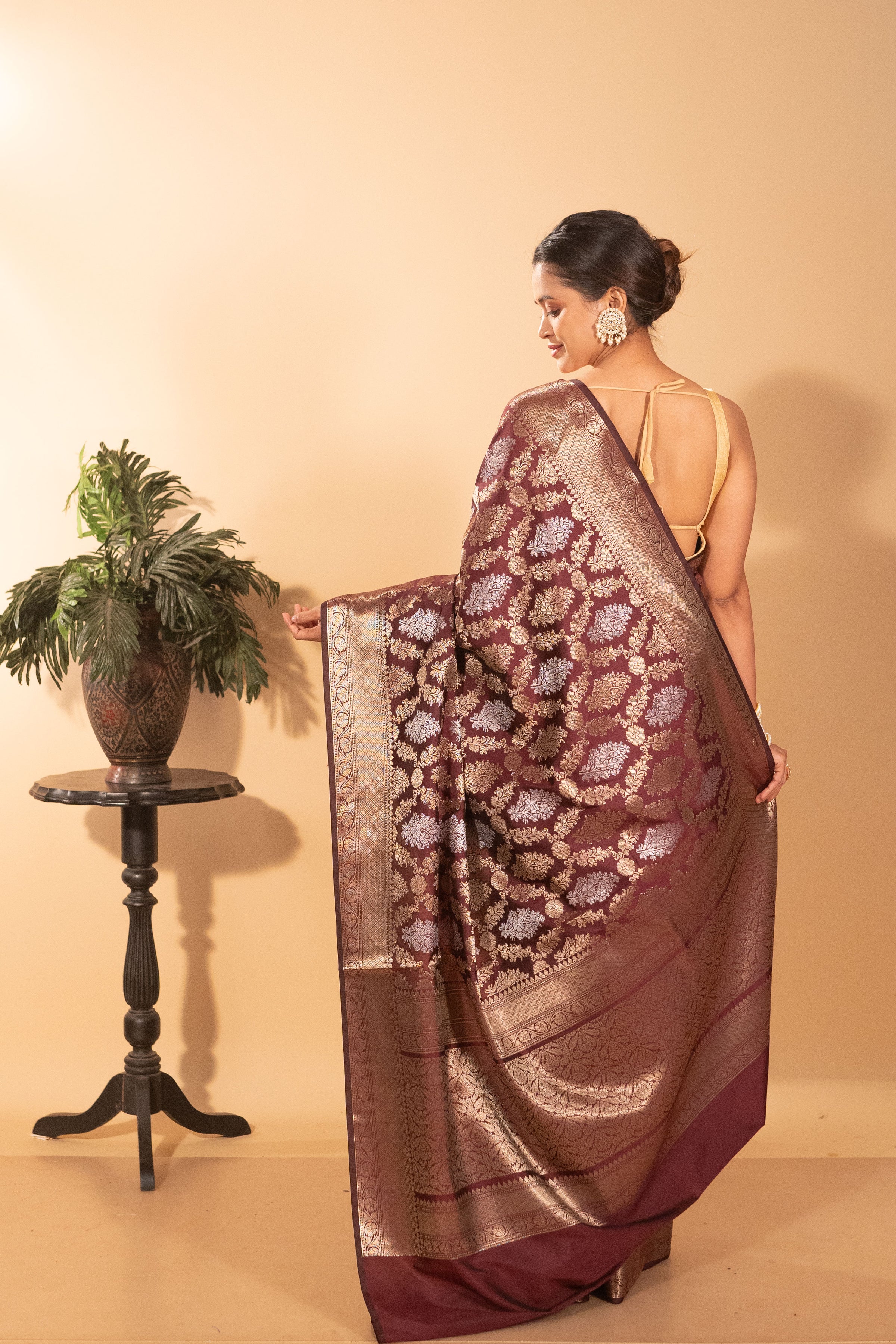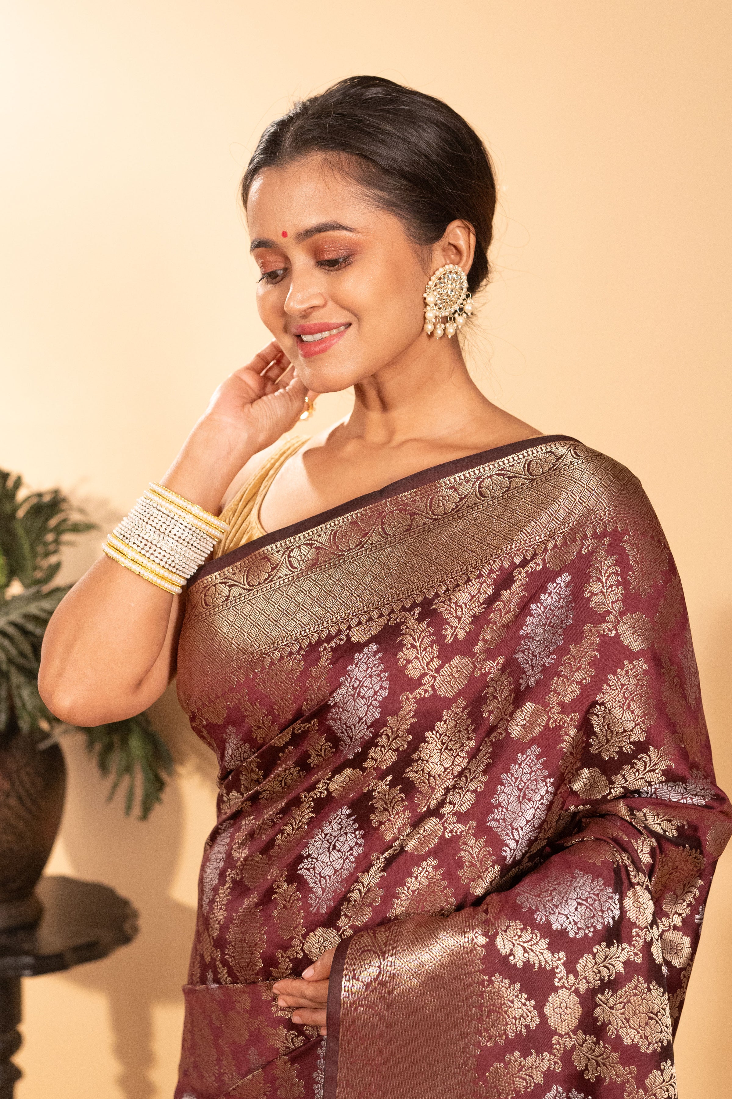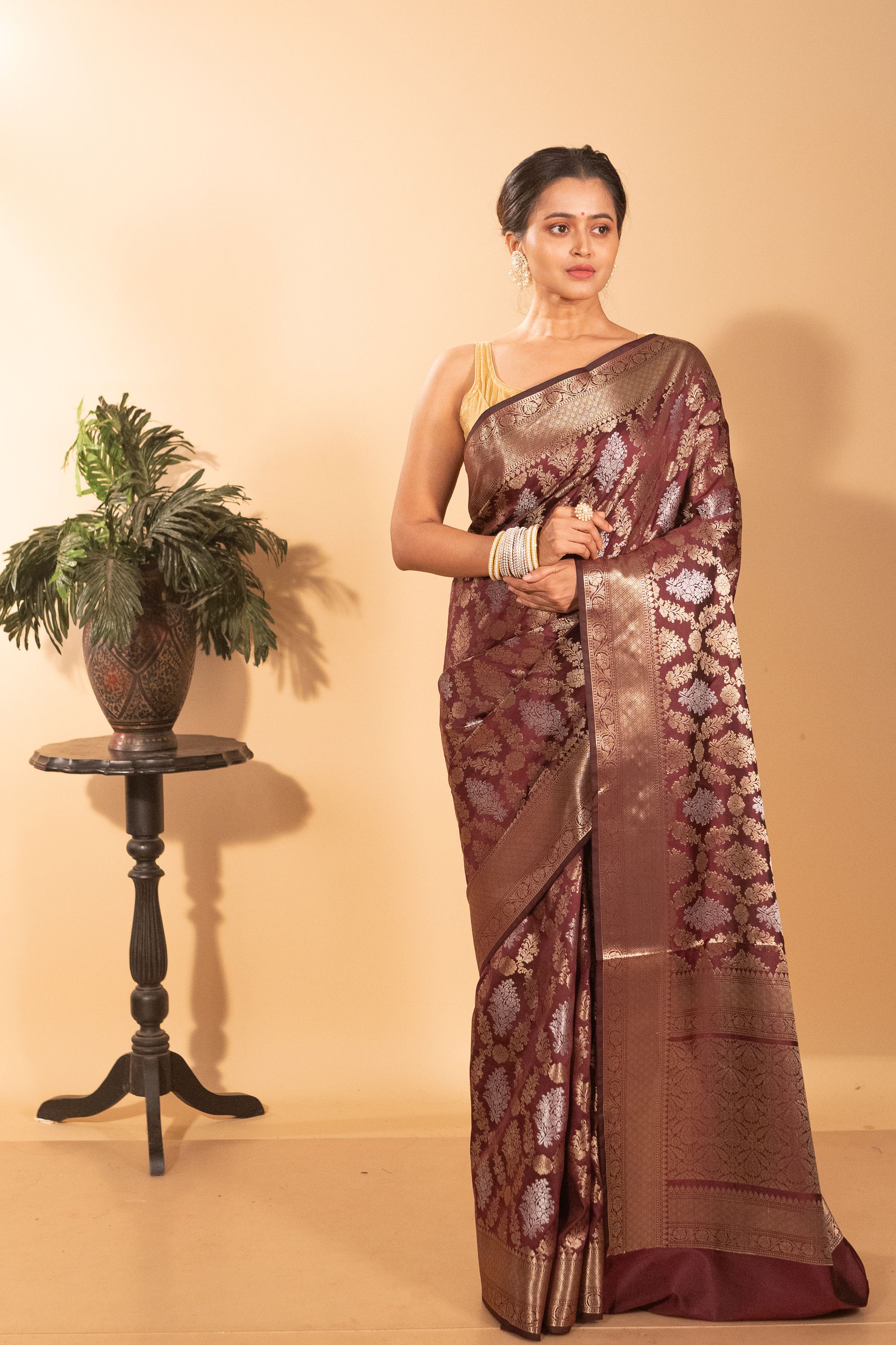 ● Elegant celebrity Semi Silk Saree with a soft fabric, smooth sheen, and luxurious texture.