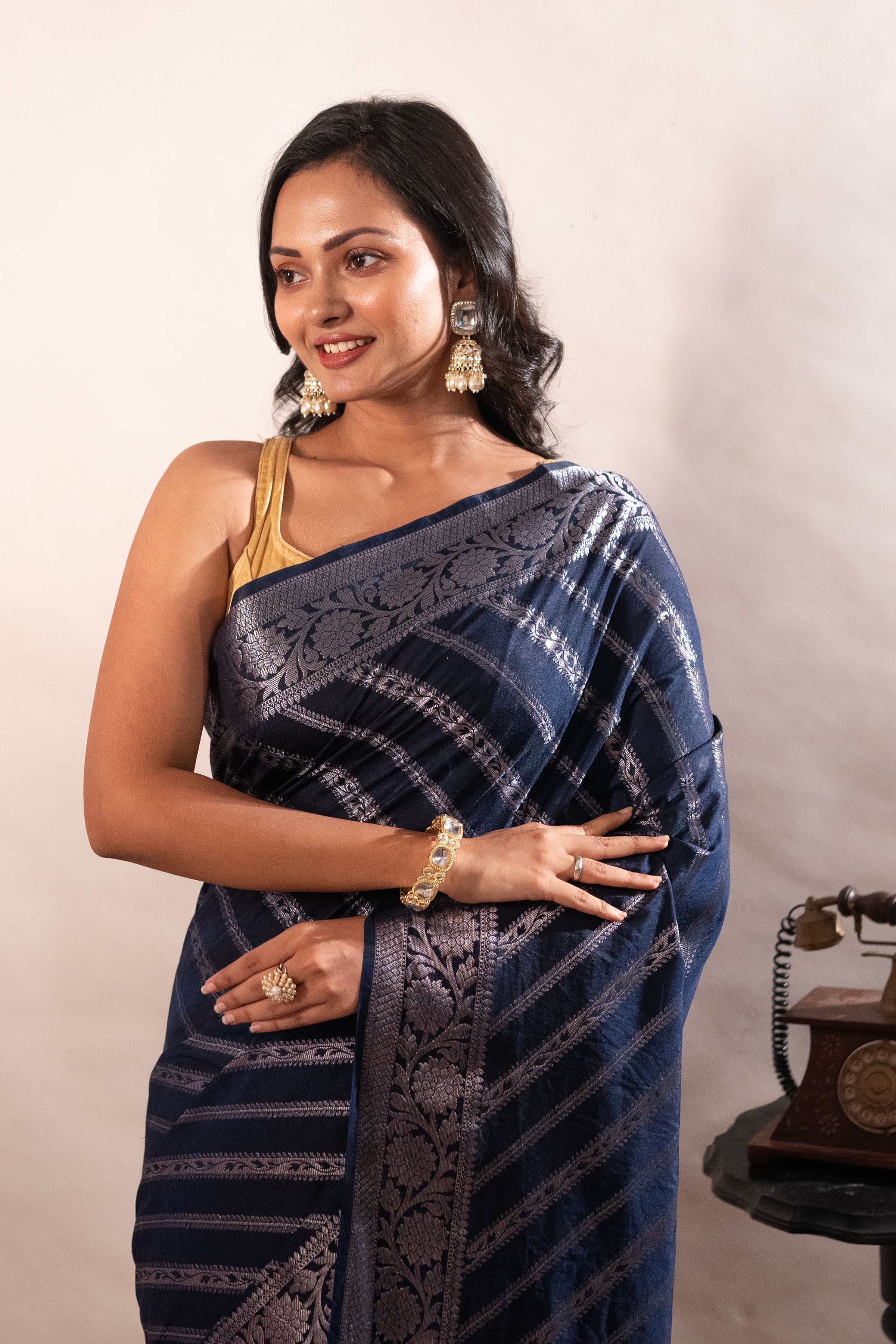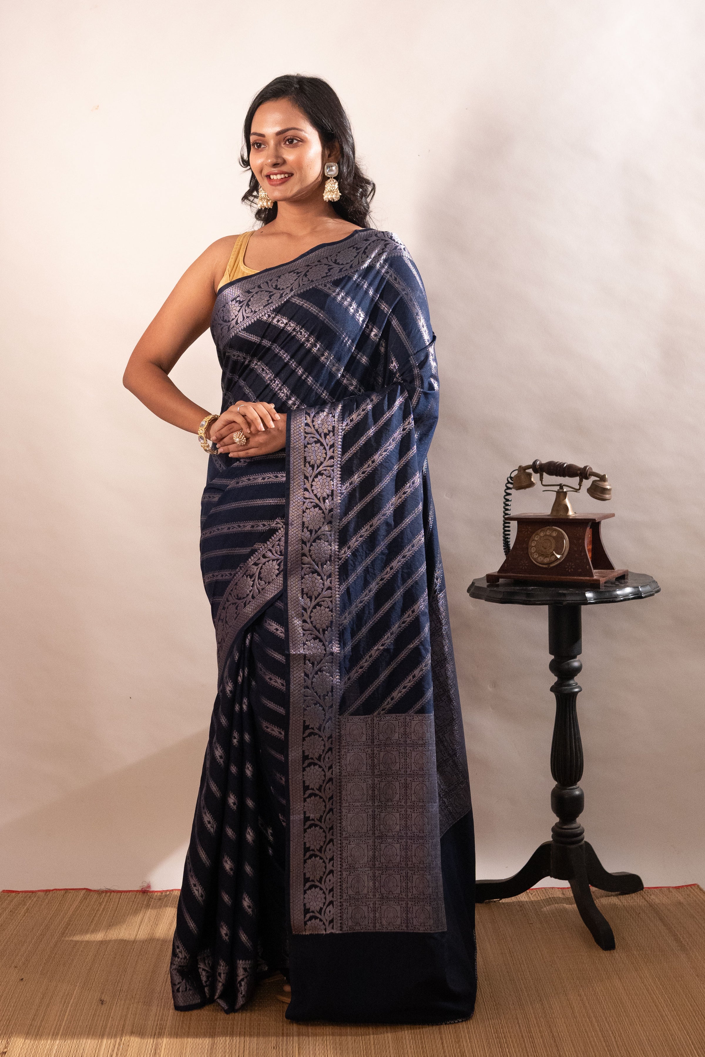 ● Authentic pure Raw Mango Silk Saree with a soft texture to offer the rich feel and look.