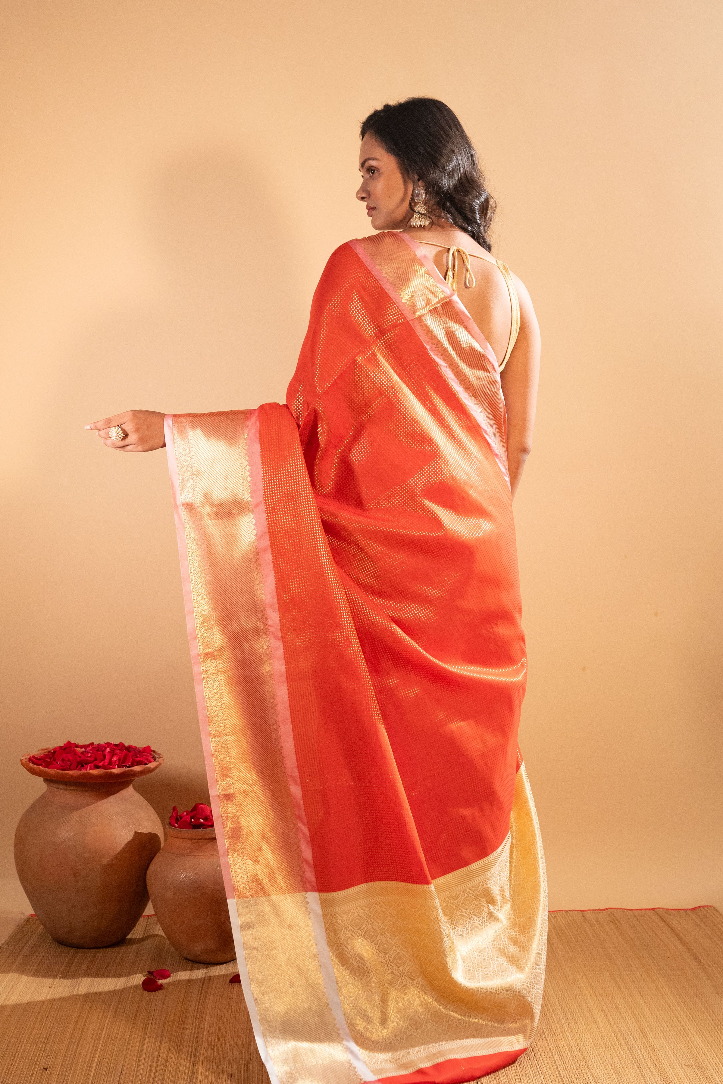 ● Authentic Banarasi semi Katan silk saree with unique designs and deep detailing to boost the look.