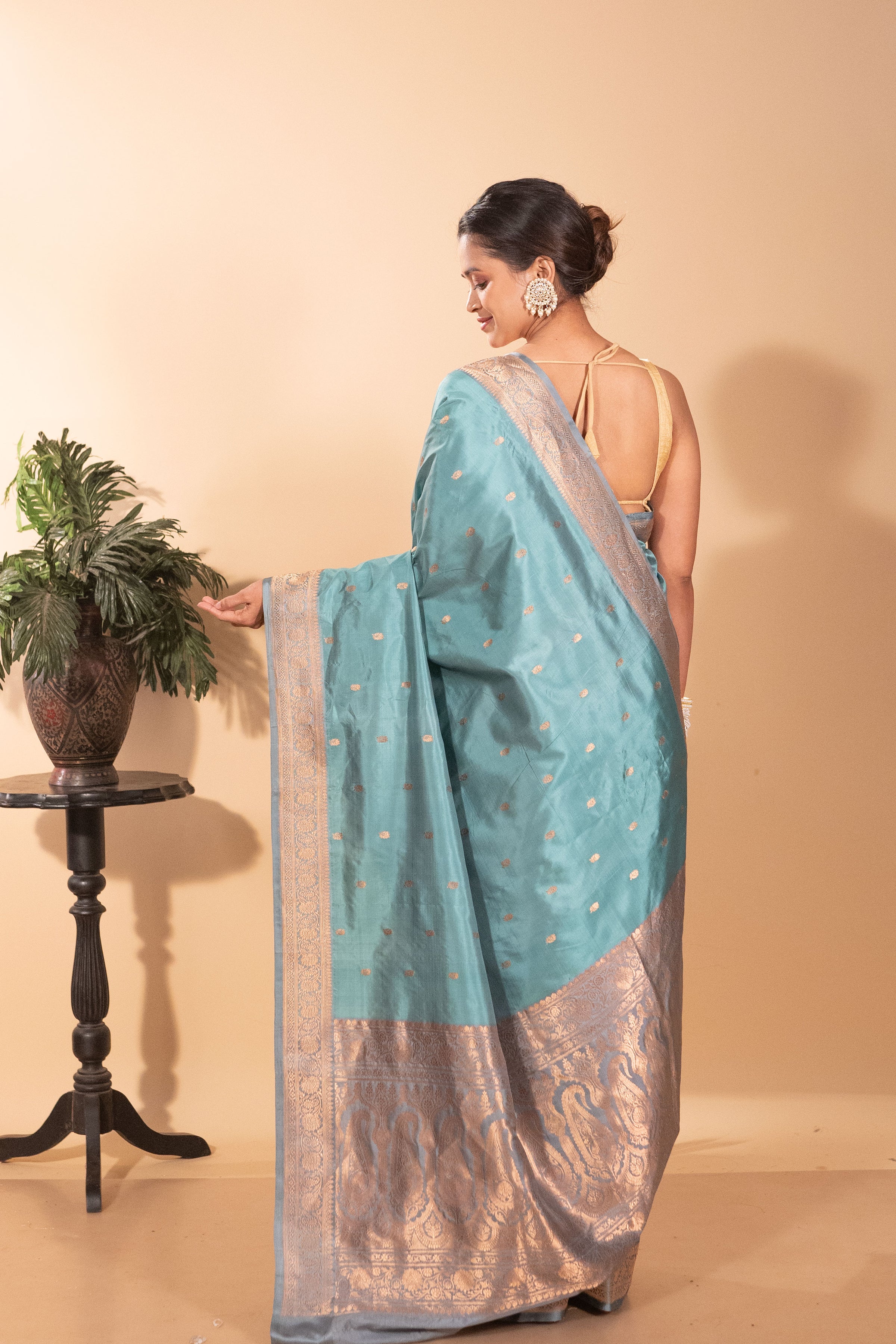 Pure Raw Mango Blue Silk Saree