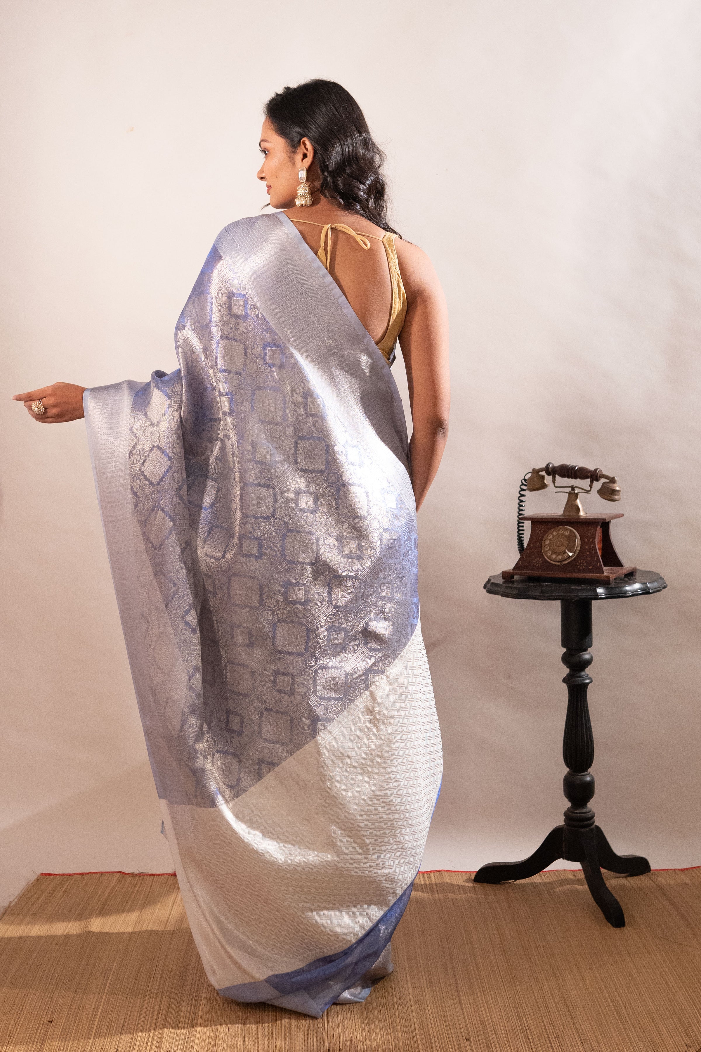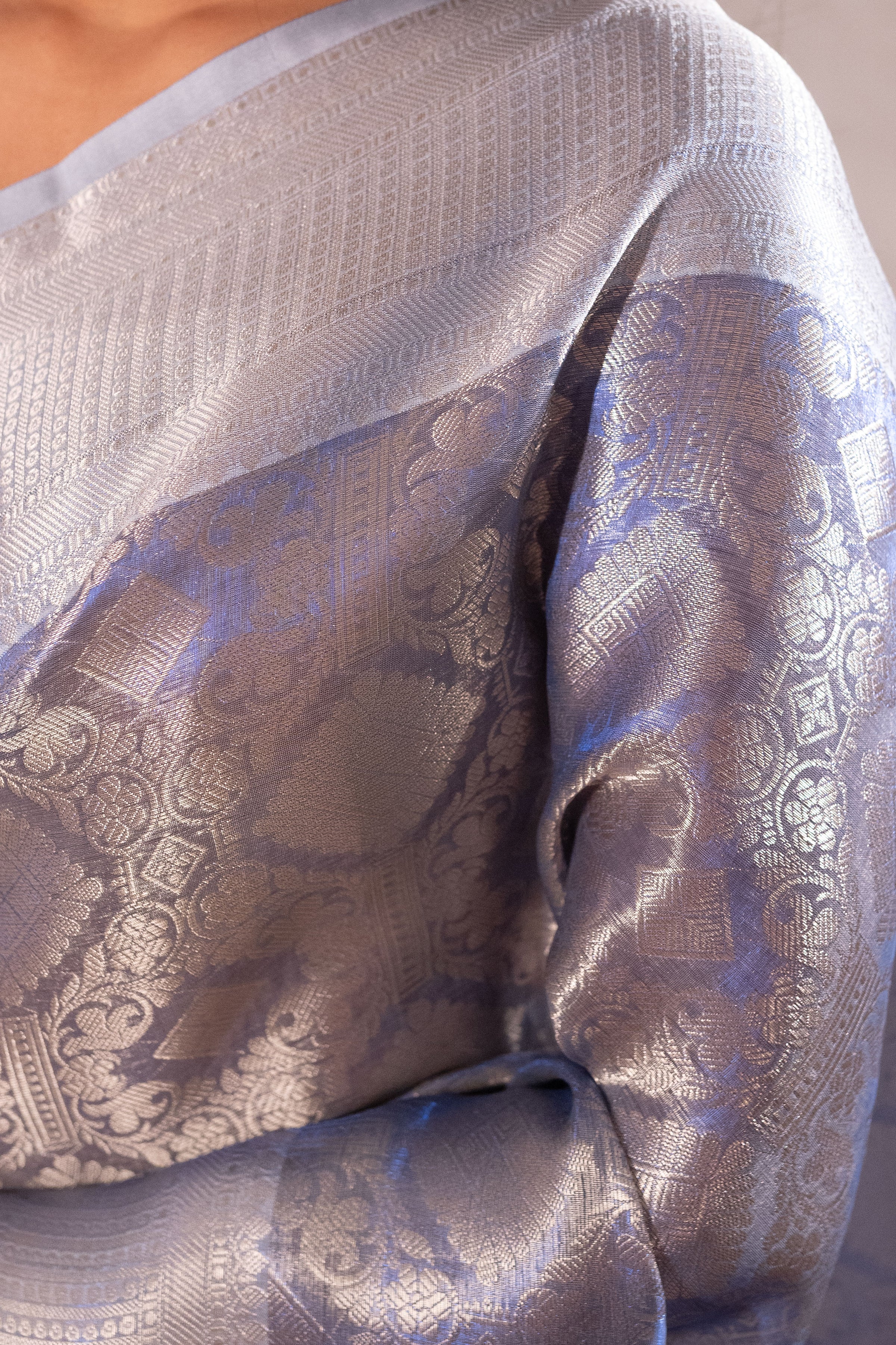 ● High-quality and premium Tissue Silk Saree India with eye-catching sheen.