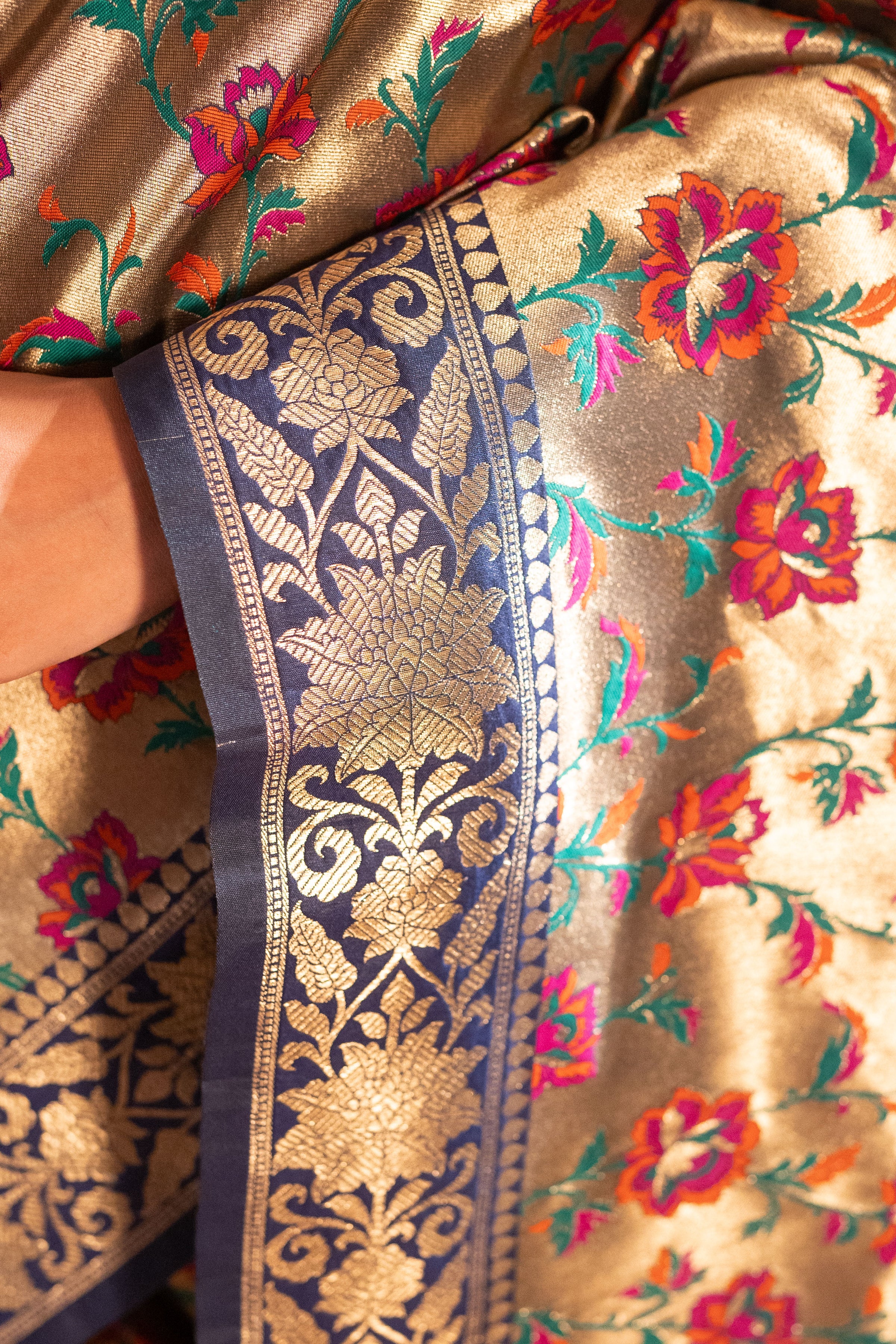 ● Authentic and original pure Banarasi tissue embossed saree India with various styles and designs collections.