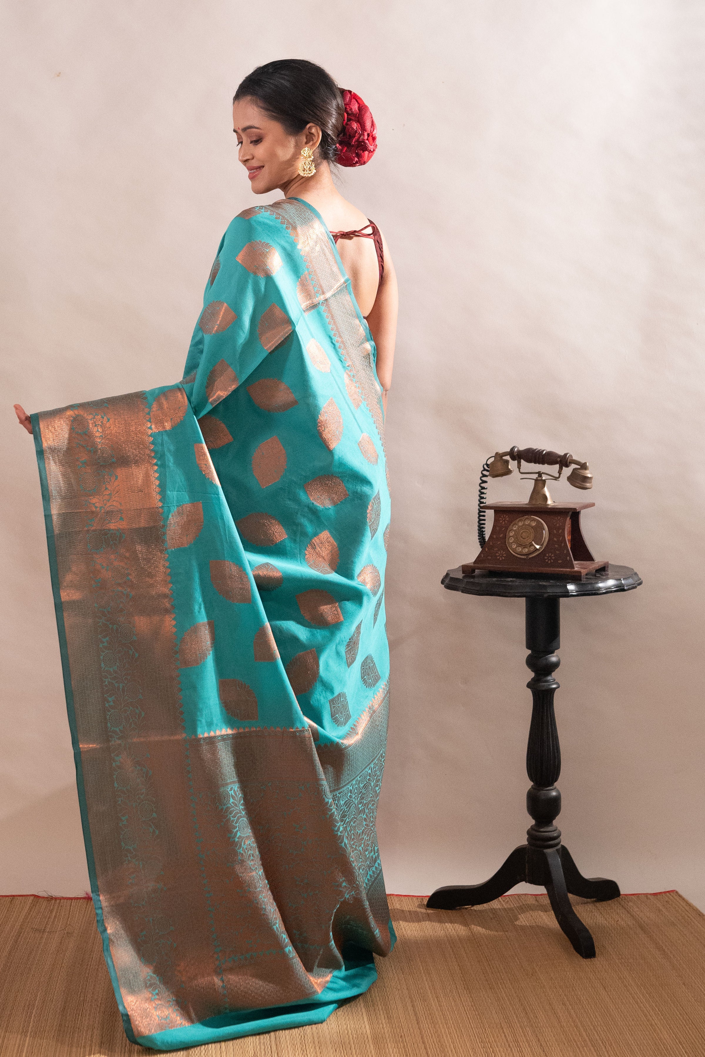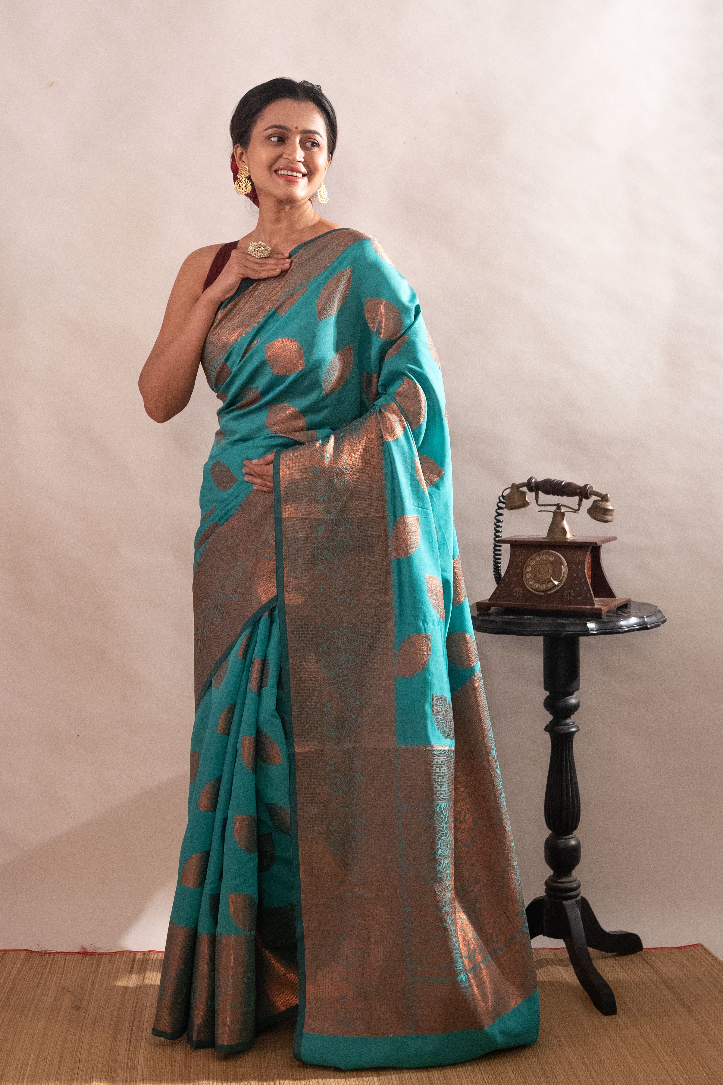 ● Elegant sky blue semi-silk saree for an eye-catching and refreshing feel.