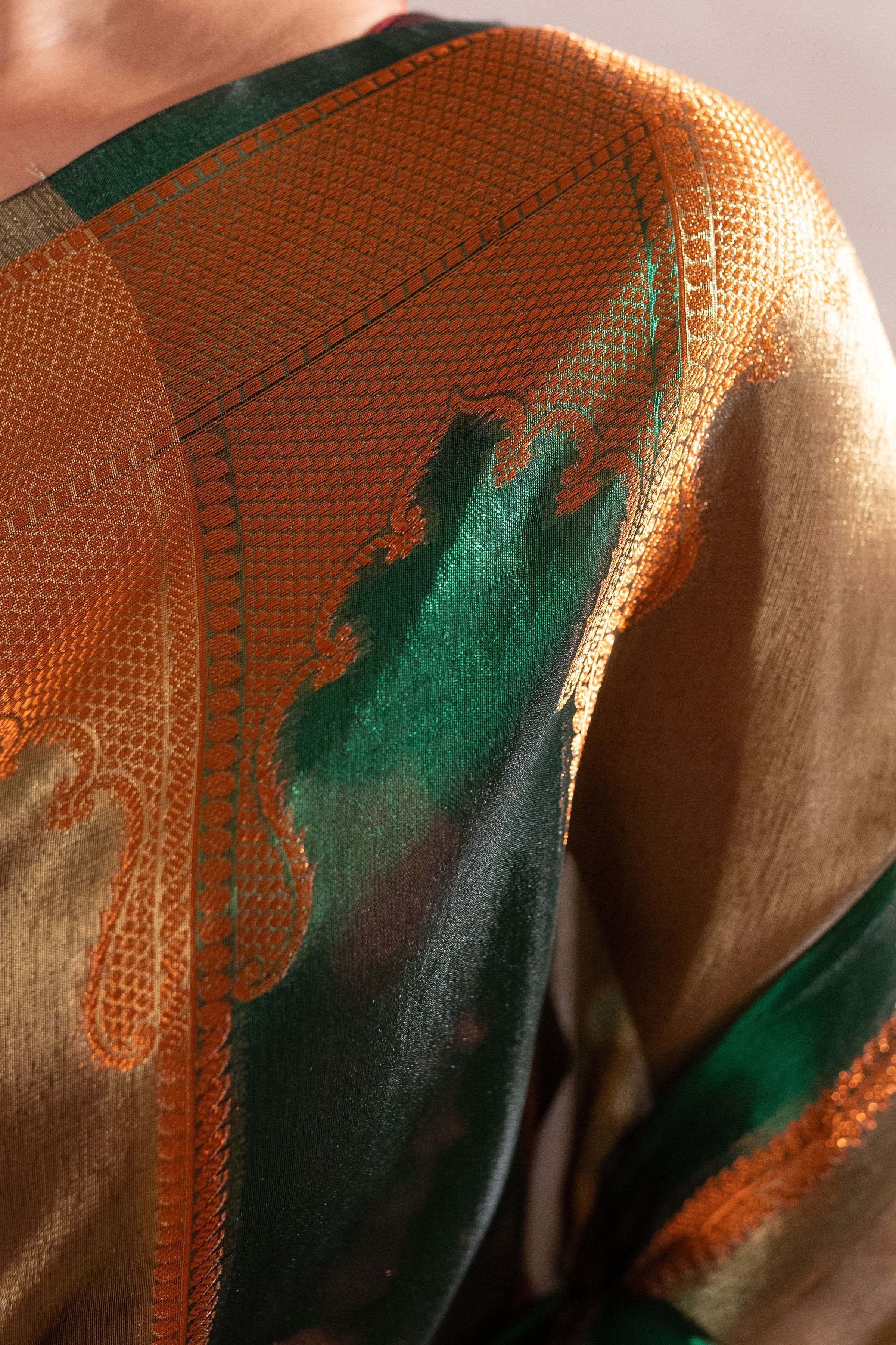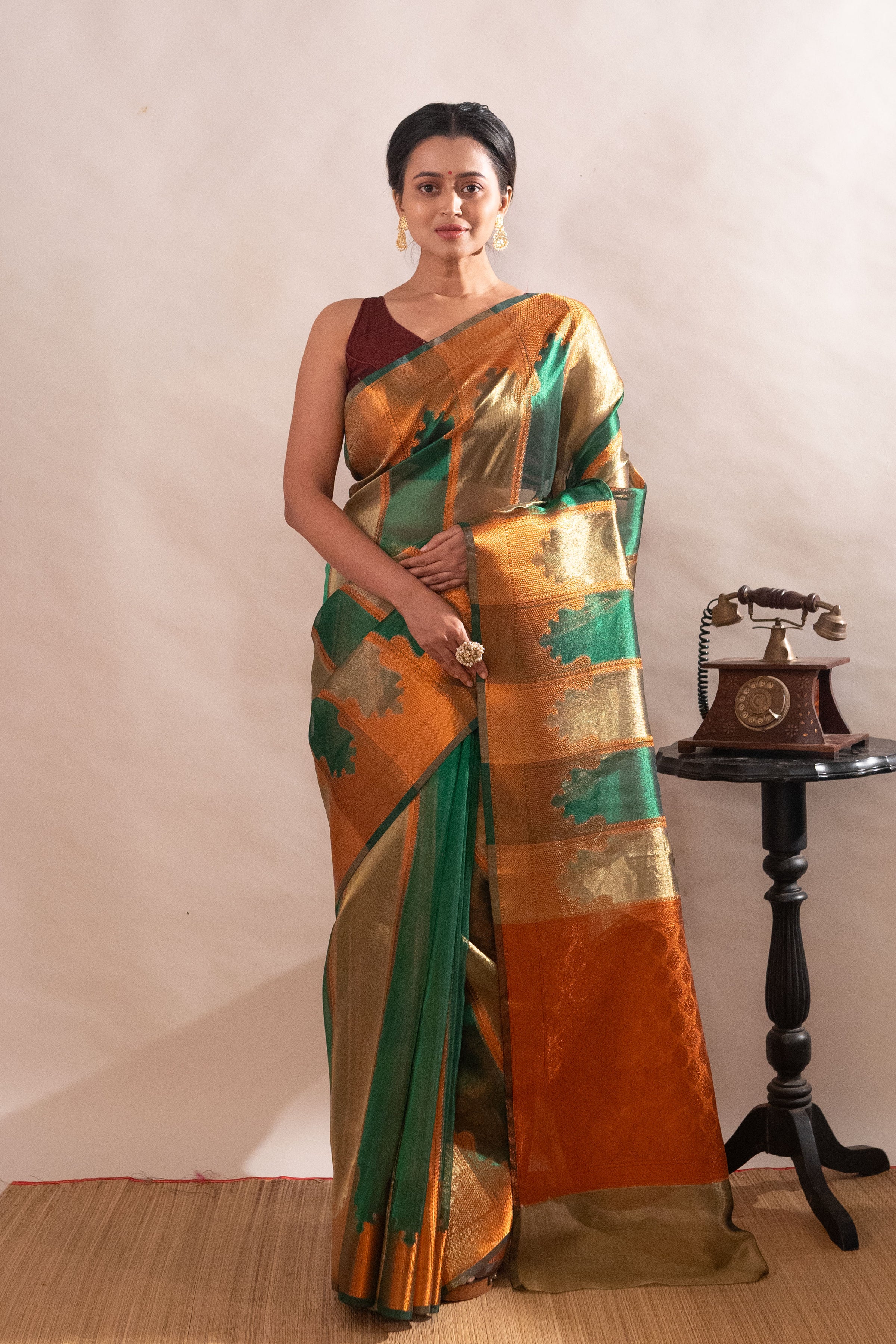 Tissue Silk Saree Green Golden