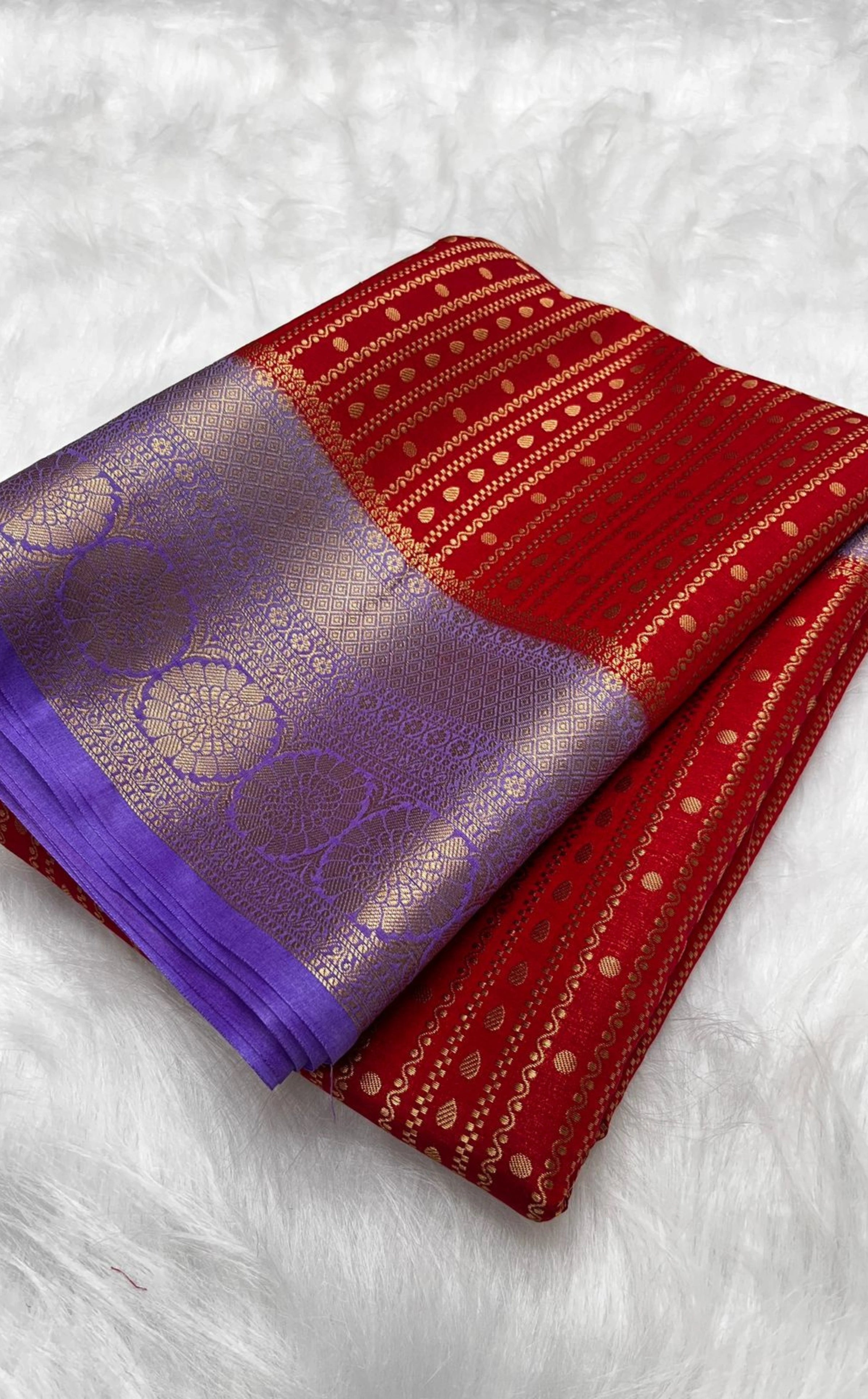 Red and Purple Semi Katan Soft Silk Saree.